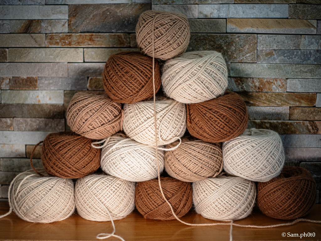 Un tout petit élevage me permet de tisser les toisons de Heidi, Charisma, Aly etc..dont les toisons sont triées par leurs éleveurs Alpagwenn puis transformées dans une petite filature du Nord de la France pour revenir en belles pelotes extrêmement douces.