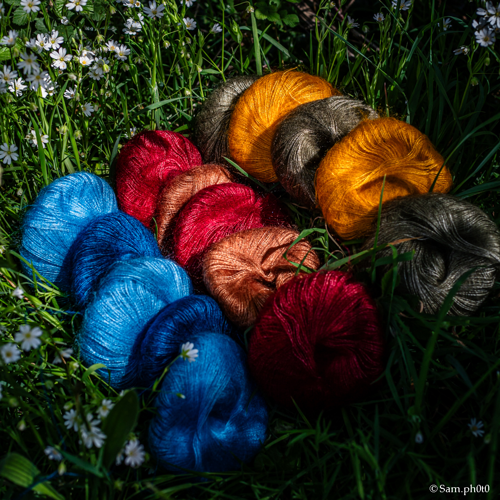 Le mohair, est très léger, agréable à porter et offre une excellente isolation thermique tout en laissant la peau respirer. Thermorégulatrice, résistante et durable, la fibre conserve son aspect soyeux et son gonflant naturel après des années d’utilisation. Les mohair sont teintés selon des standards OEKO TEX et GOTS, et c’est un vrai bonheur de tisser ces matières aux couleurs chatoyantes.
